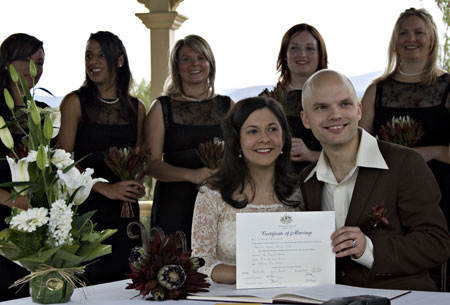 Торжество проходило в винарне Henkell Vineyards, в полутора часах езды от дома. Было приглашено порядка 80-100 гостей из числа родственников, друзей и знакомых.