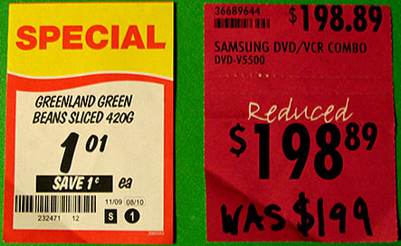 Иногда скидки просто сделаны для привлечения внимания к товару: 1 цент (фото слева) и 11 центов (фото справа).